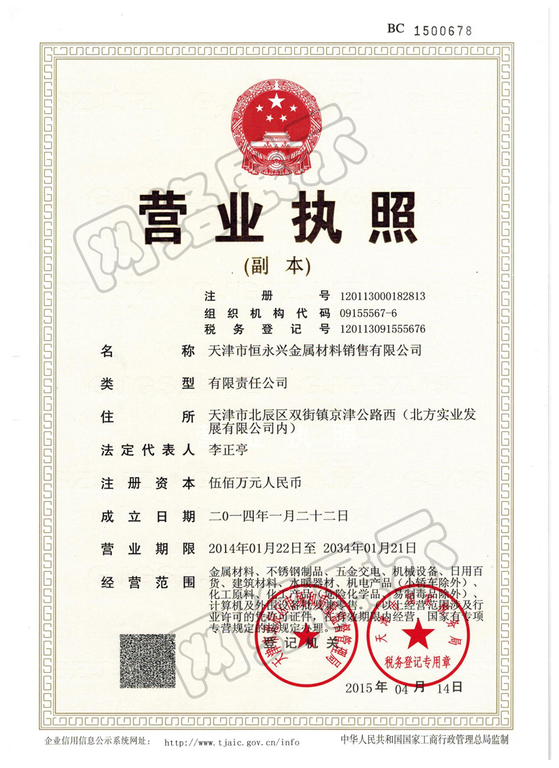 地處風景秀麗、歷史悠久的海濱城市---天津,是一家經國家相關部門批準注冊的企業。我公司憑著良好的信用、優良的服務,經過多年的努力,公司已成為天津地區專業的Q345C鋼管、Q345D鋼管、Q345E鋼管、16Mn化肥管、16Mn化肥管、流體管、輸送流體管、精密鋼管、厚壁鋼管、流體用無縫鋼管、球墨鑄鐵管銷售公司,公司遵循誠信經營,貨真價實,優質服務的宗旨,贏得了用戶,拓展了市場,建立了廣泛的銷售網絡,具有一定的知名度。