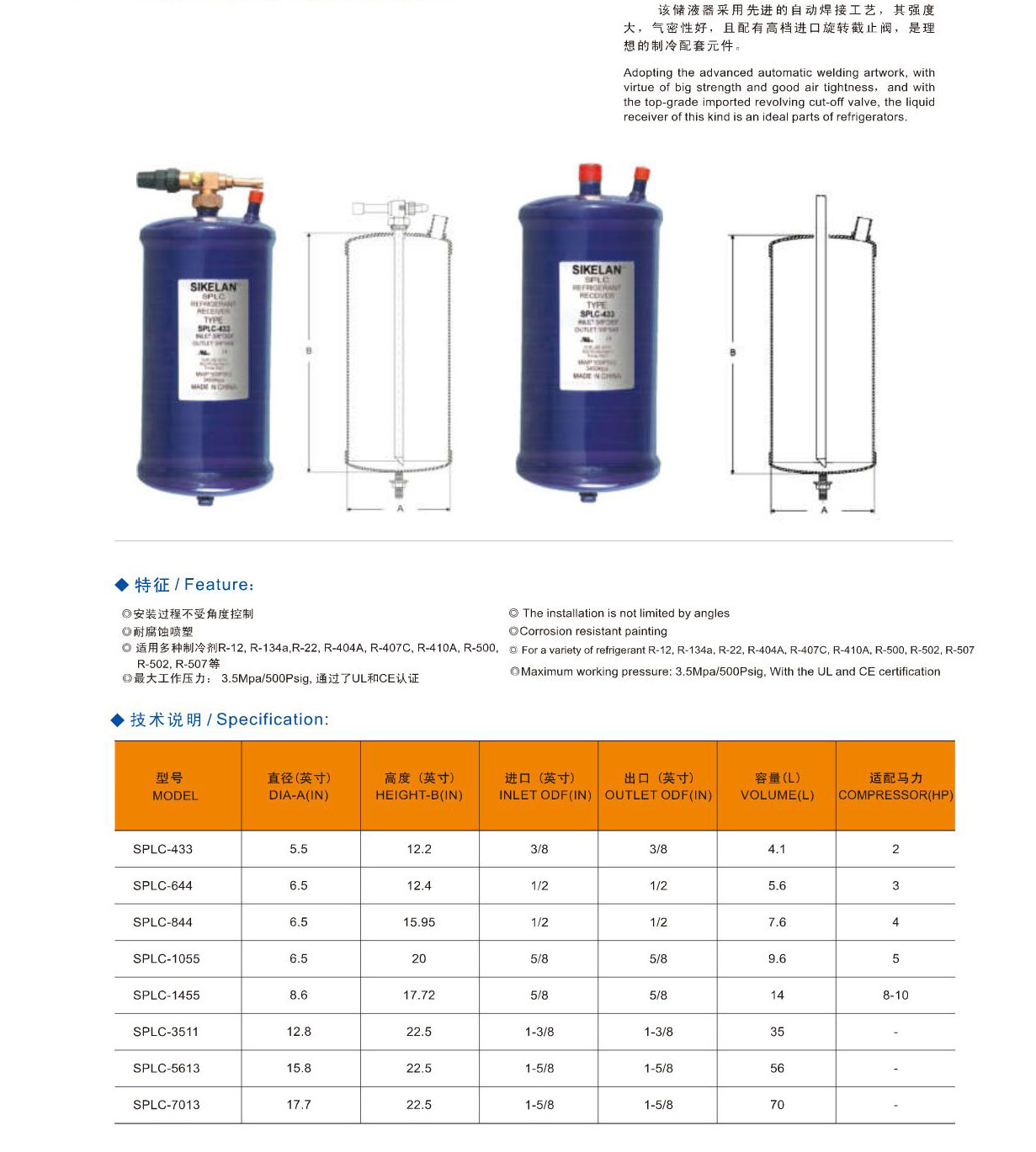 產(chǎn)品簡介:該儲液器采用先進(jìn)的自動焊接工藝,其強度大,氣密性好,且配有高檔進(jìn)口旋轉(zhuǎn)截止閥,是理想的制冷配套元件。