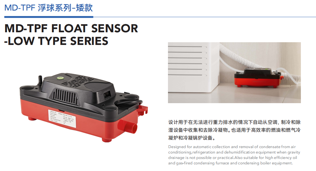 設(shè)計用于在無法進行重力排水的情況下自動從空調(diào),制冷和除濕設(shè)備中收集和去除冷凝物。也適用于高效率的燃油和燃?xì)饫淠隣t和冷凝鍋爐設(shè)備。