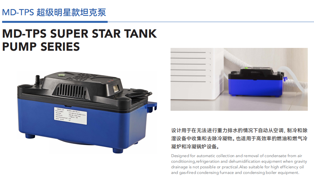 設(shè)計(jì)用于在無(wú)法進(jìn)行重力排水的情況下自動(dòng)從空調(diào),制冷和除濕設(shè)備中收集和去除冷凝物。也適用于高效率的燃油和燃?xì)饫淠隣t和冷凝鍋爐設(shè)備。